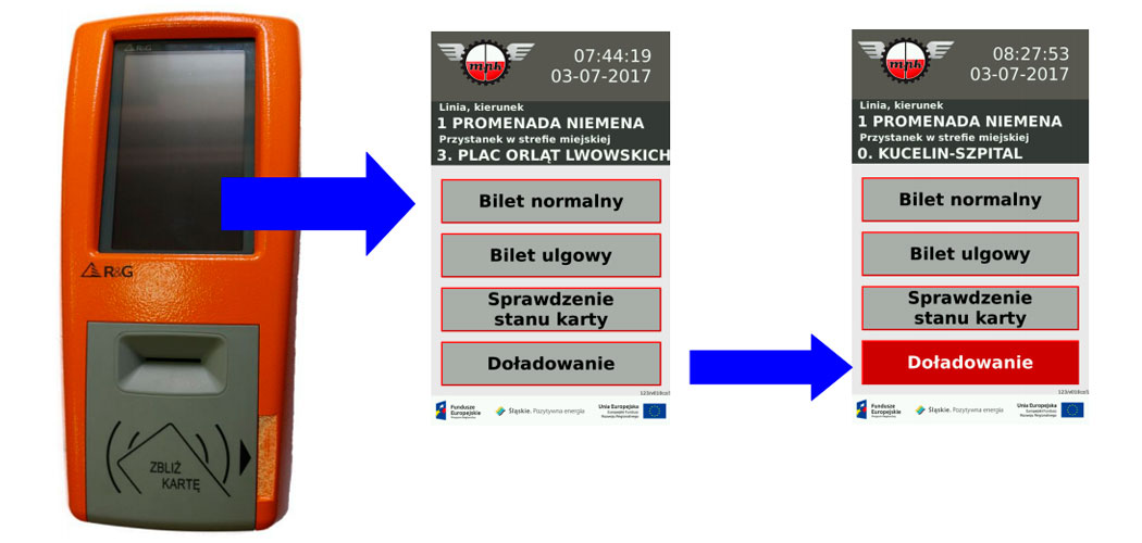 2. Przy kasownikach „nowego” typu (kasownik z ekranem LCD) - wybranie przycisku „Doładowanie”