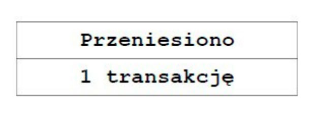 Liczba informuje, ile operacji doładowania internetowego zostało pomyślnie wykonanych w trakcie operacji doładowania ( w tym przypadku kasownik sygnalizuje, że była tylko jedna operacja doładowania internetowego ).